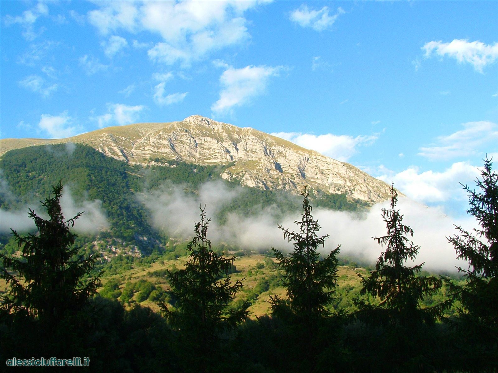 Abruzzo. Il Monte Marsicano (2253 mt) fotografato da un campeggio di Opi prima di intraprenderne la scalata.